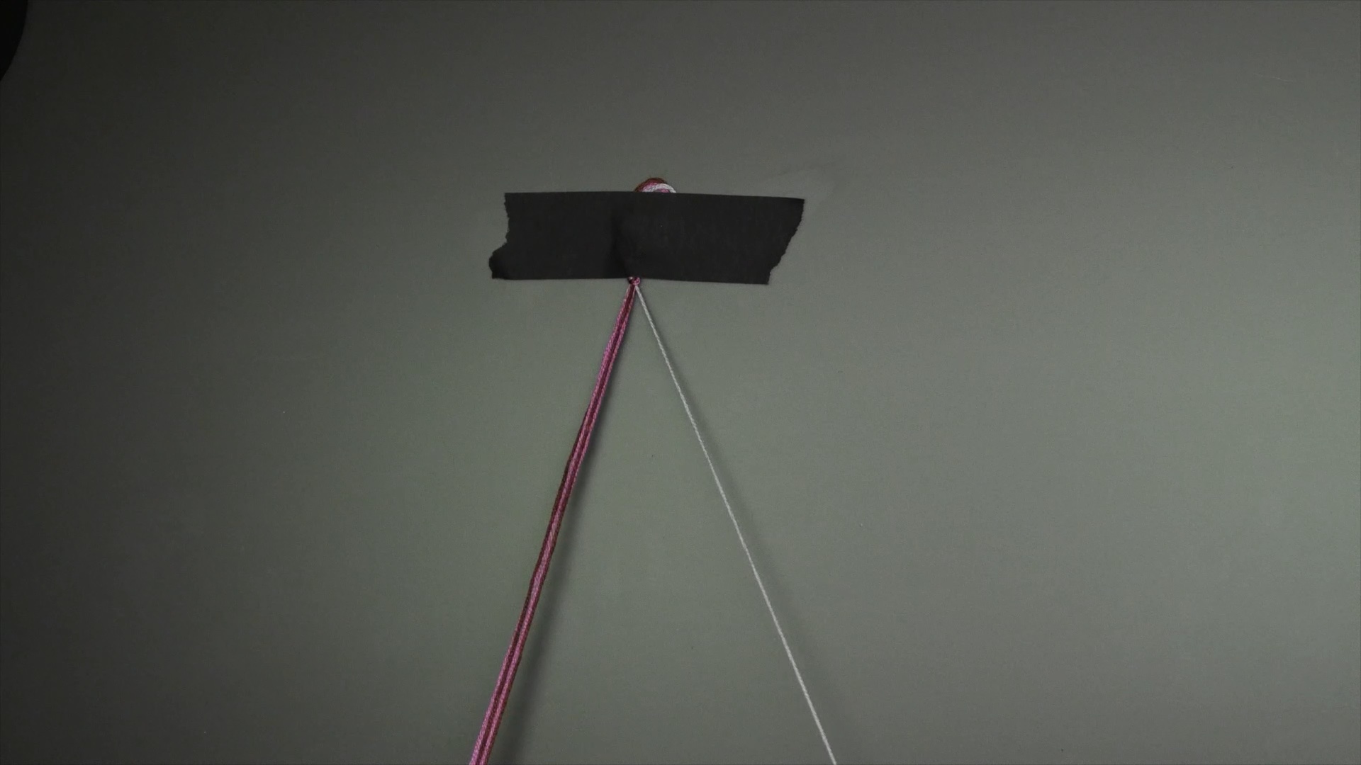 This one is fun and fast to make. Start with three strings a little over a meter or yard long, then fold them in half and tie a knot at the loose ends.